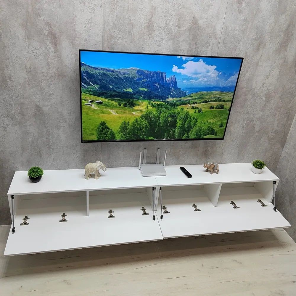 Данные подвесные тумбы под телевизор можно навешивать на стену комплектом (по 2 шт.).